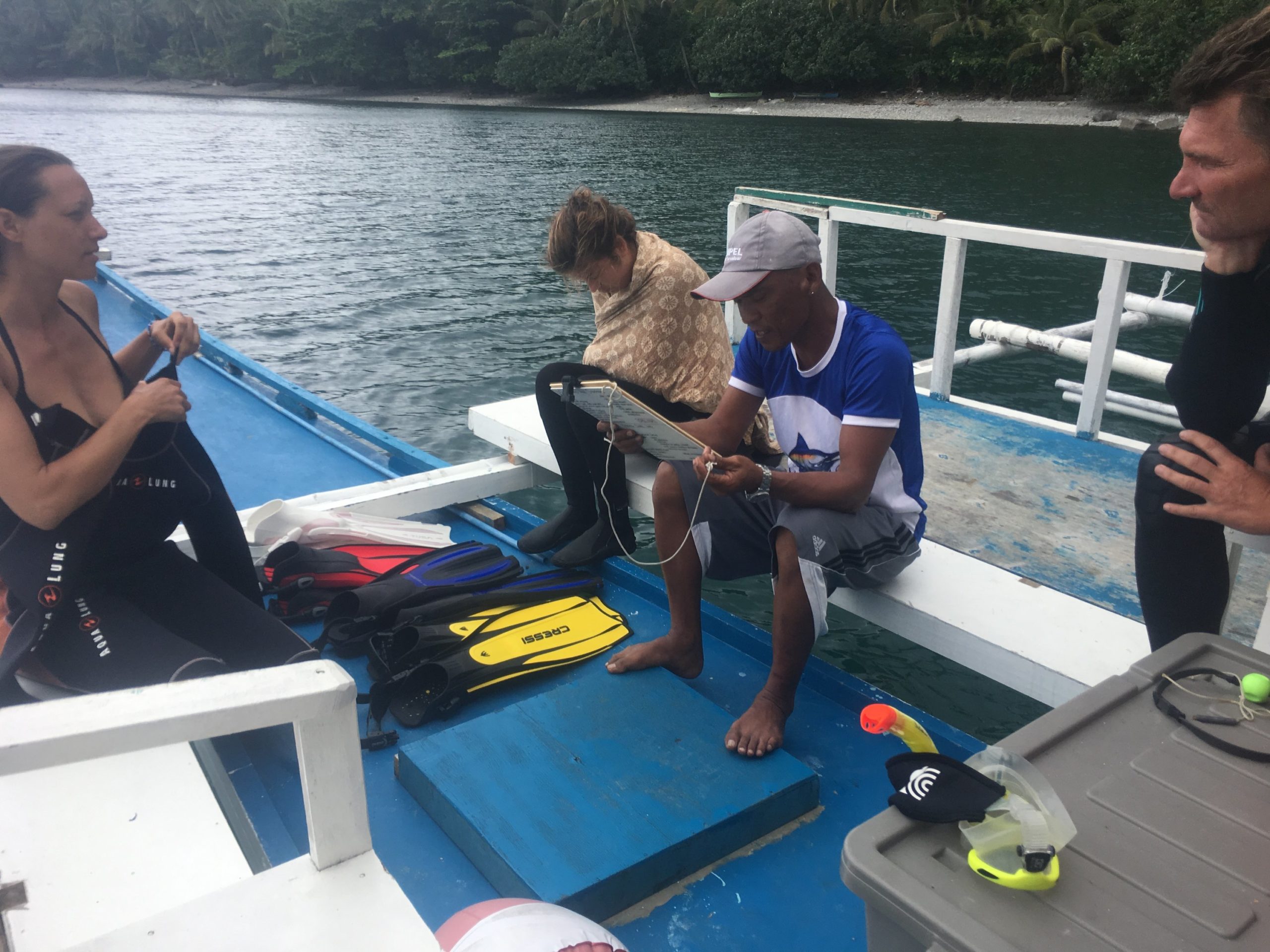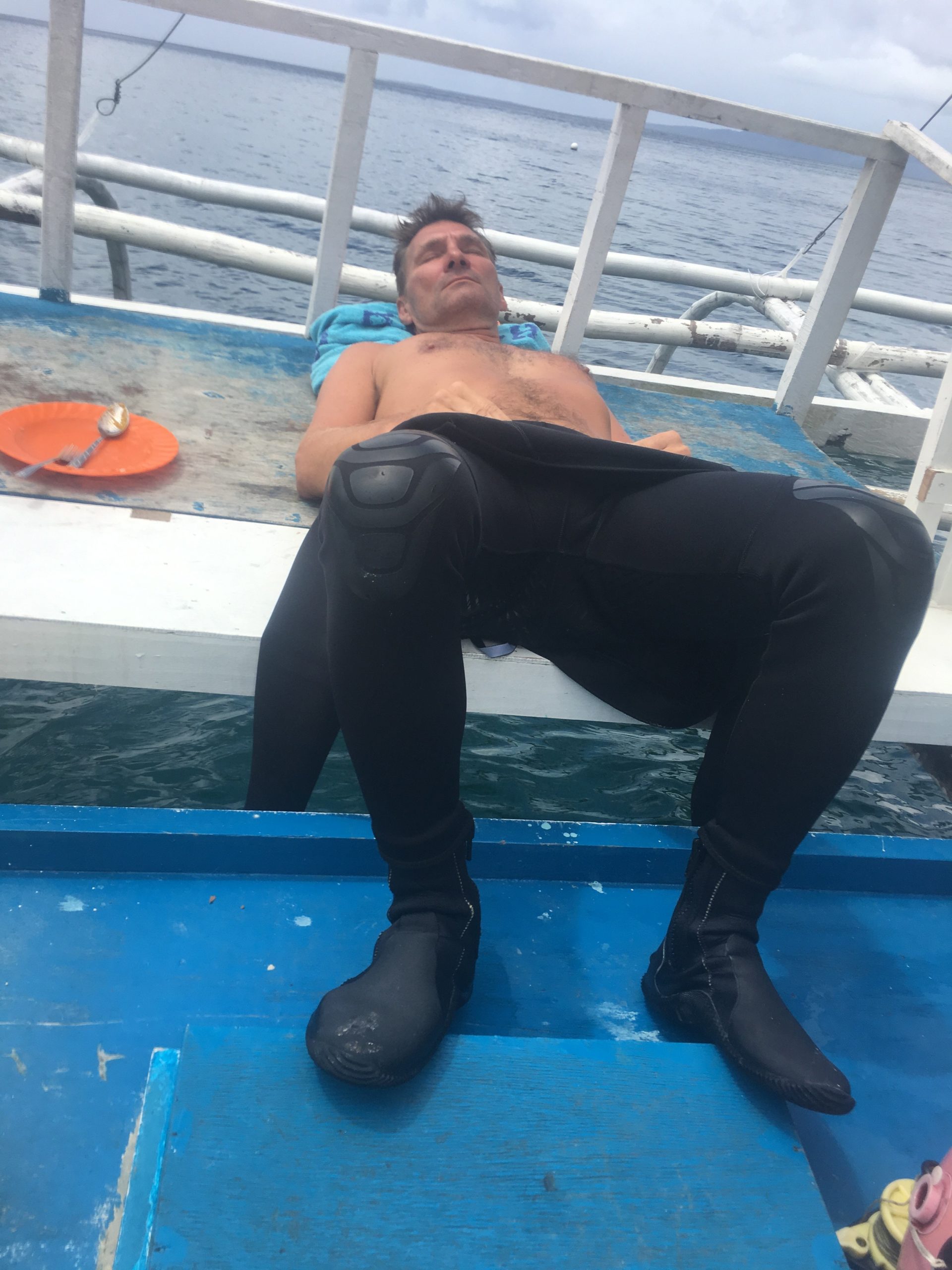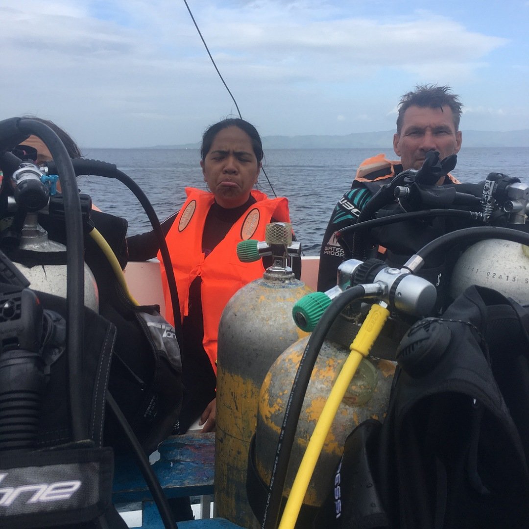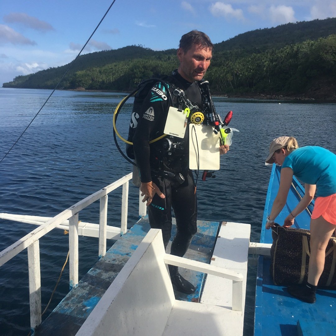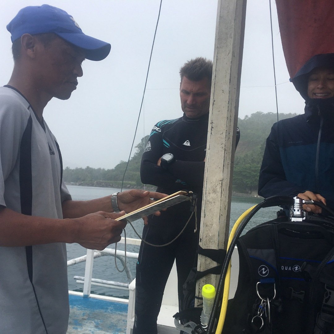 Am Nächsten Tag ging es dann aber tatsächlich los. Die Details habe ich ja bereits im Beitrag Abgebrochene Survey mit dem Boot beschrieben. Am Dienstag hatten wir noch einigermaßen Glück mit dem Wetter, aber ab Mittwoch hat es durchgehend geregnet. Das hat sich gehalten bis Freitag. Unter diesen Bedingungen zu Tauchen macht sogar auf den Philippinen wenig Spaß. Es ist nicht das Tauchen selbst, sondern die Kälte. Nach dem ersten Tauchgang ist alles nass und der Wind trägt dazu bei, dass sich alles noch kälter anfühlt. Da es auch dauernd geregnet hat, machte ein Kleiderwechsel auch wenig Sinn. Wir sind dann also kalt in den zweiten Tauchgang gestartet. Kein Vergnügen. Die Rückfahrt bei Wind und Regen war dann der Abschluss des Tages. Im Großen und Ganzen eine ziemlich kühle Angelegenheit.