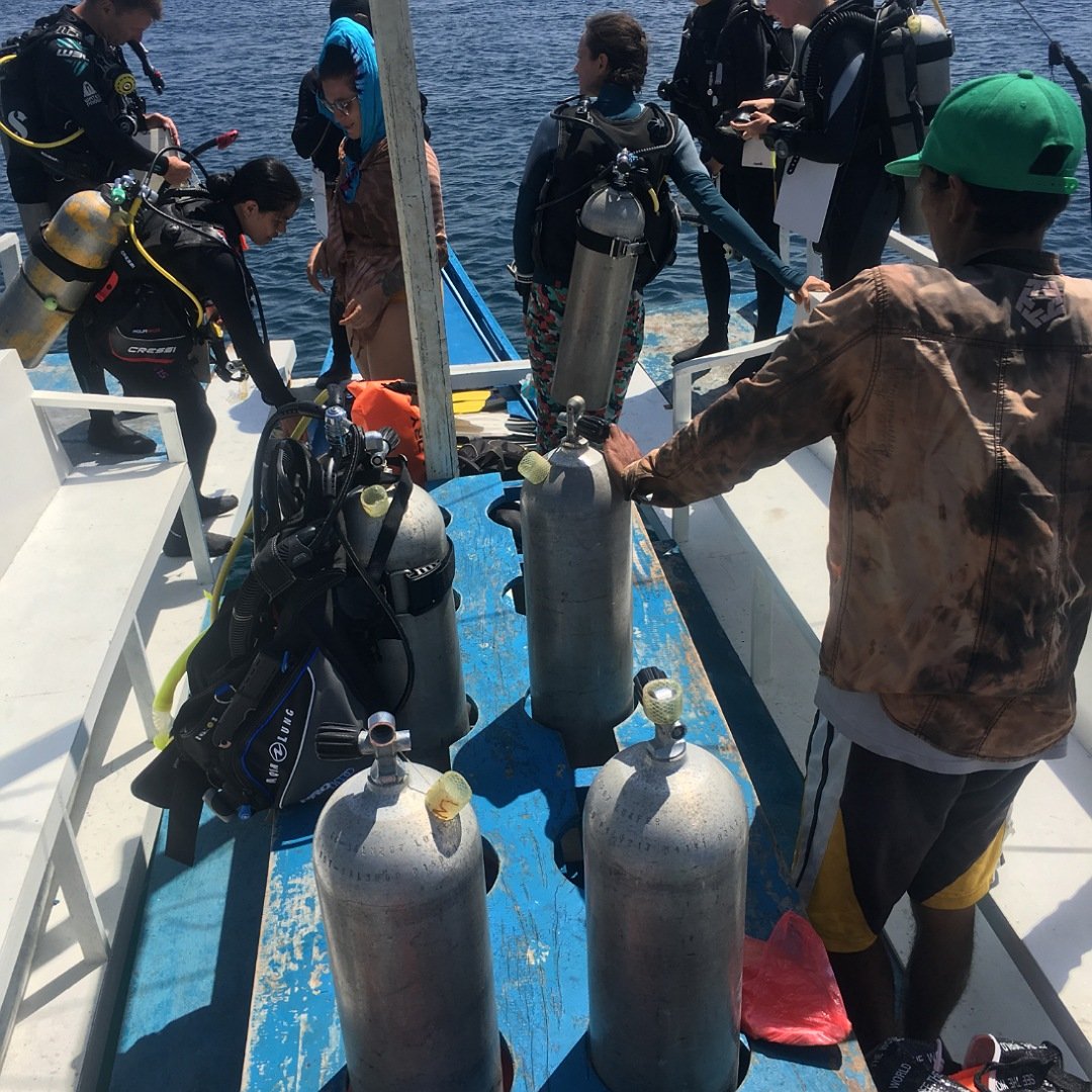 Wir haben uns aber trotzdem fertiggemacht und das Equipment ans Wasser gebracht, um es auf das Boot zu verladen.